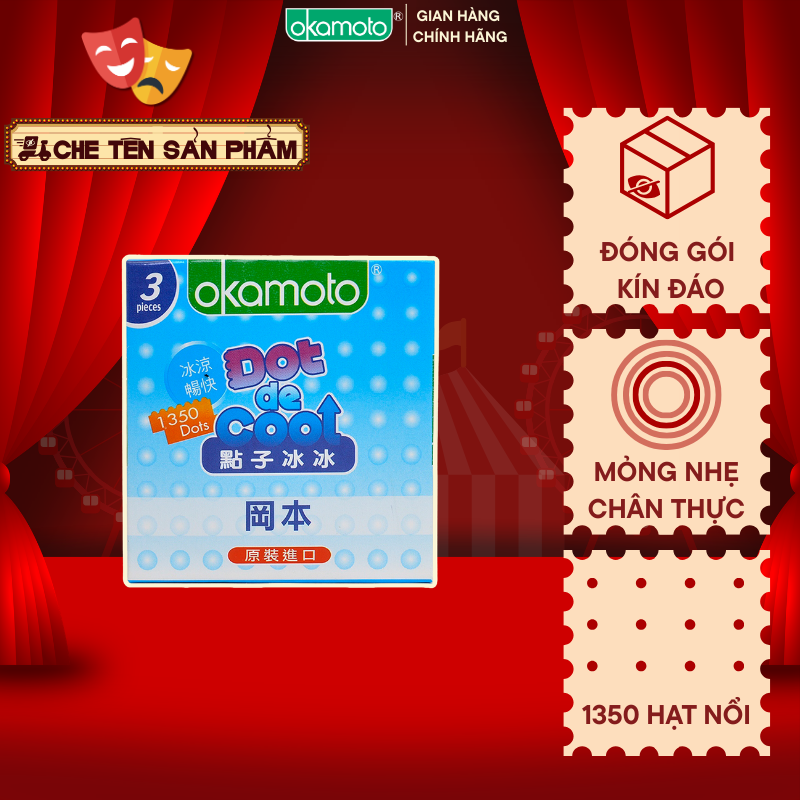Bao Cao Su Okamoto Dot De Cool Hạt Nổi Kéo Dài Thời Gian Hộp 3 Cái là sản phẩm đặc biệt với 1350 hạt nổi độc đáo, giúp kéo dài thời gian quan hệ và mang đến cảm giác mát lạnh tuyệt vời. Sản phẩm giúp cả hai cùng tận hưởng trải nghiệm đê mê và kích thích trong suốt cuộc yêu.