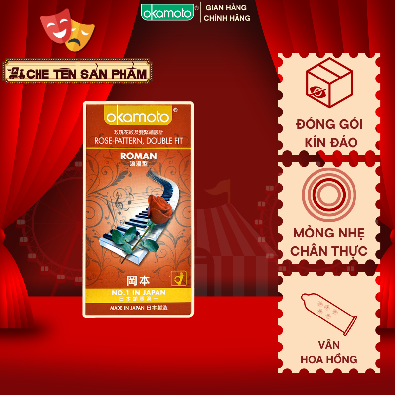 Bao Cao Su Okamoto Roman Gân Hoa Hồng Hộp 10 Cái