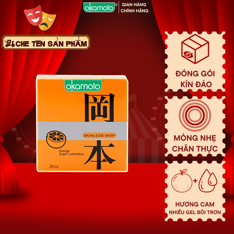 Bao Cao Su Okamoto Skinless Skin Orange Lubricative Hương Cam Hộp 3 Cái