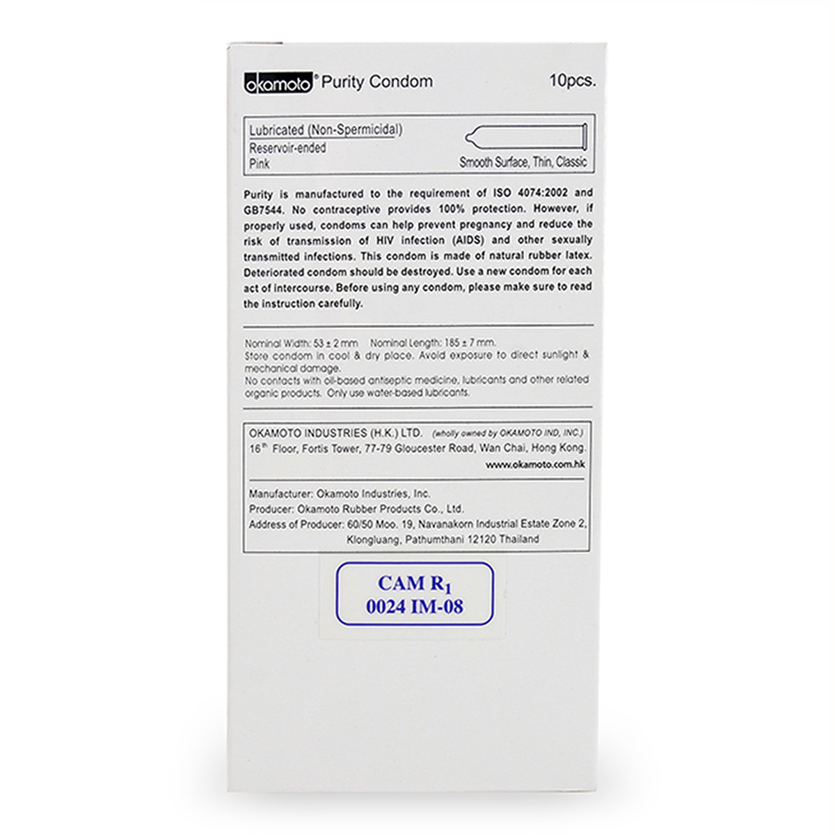 | Thông tin thêm | Xem trên bao bì Okamoto Purity |