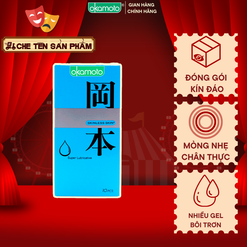 Bao Cao Su Okamoto Skinless Skin Super Lubricative Siêu Bôi Trơn Hộp 10 Cái