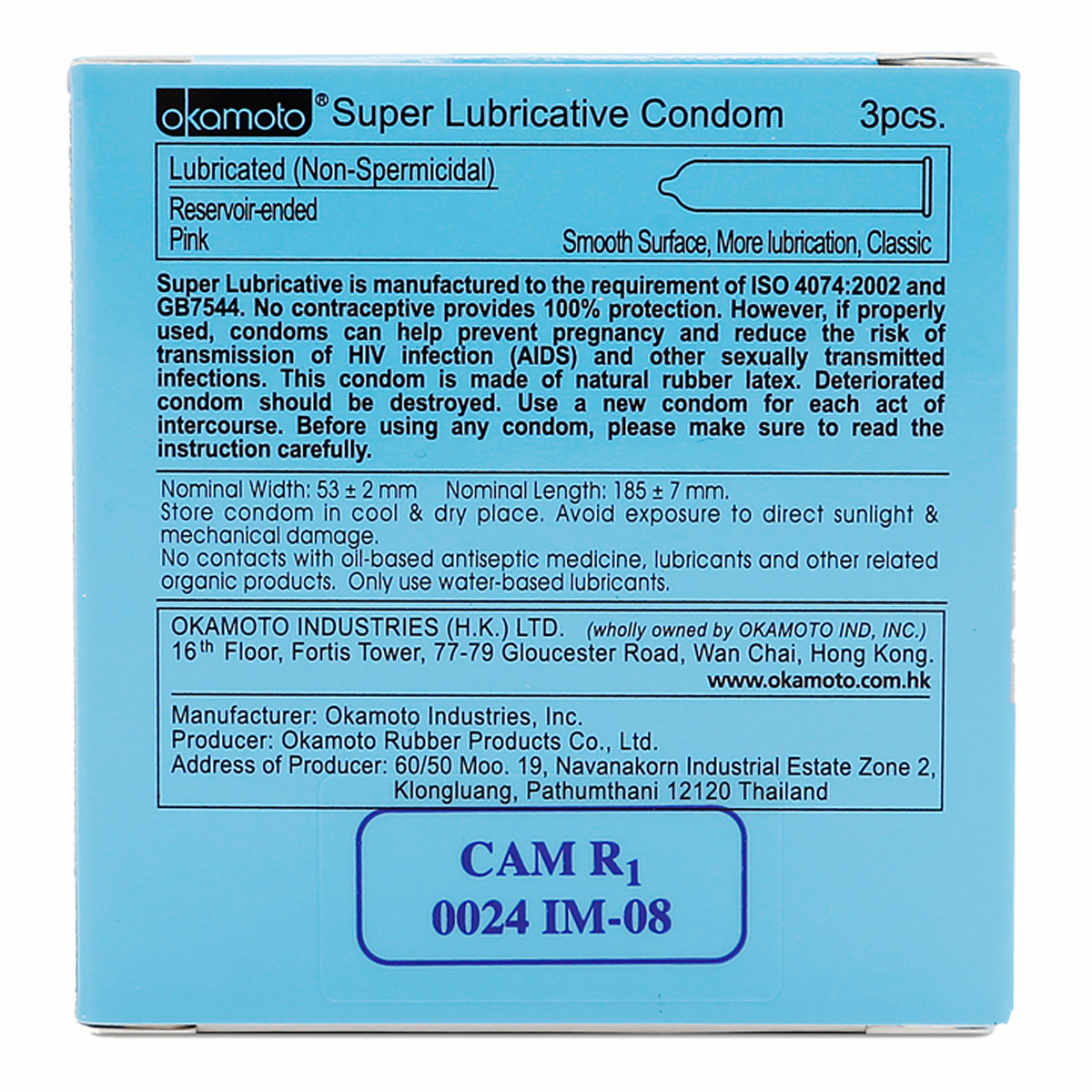 - Bảo quản Okamoto Super Lubricated ở nơi khô ráo, thoáng mát, tránh ánh nắng và nhiệt độ vượt quá 35°C để giữ chất lượng tốt nhất.